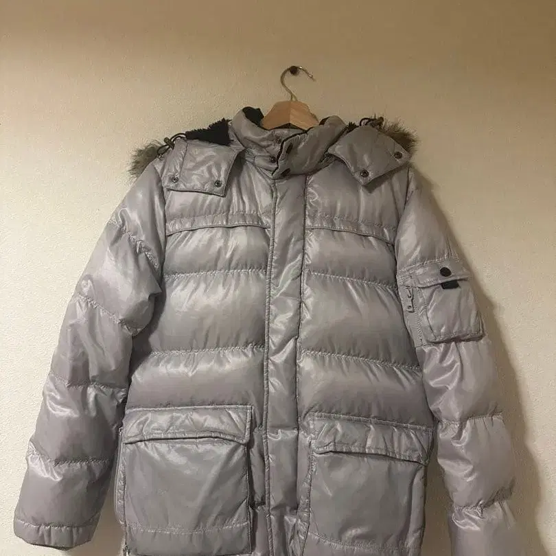 실버 다운 자켓 퍼 척 포함 드로 코드 포함 y2k 헤이세이