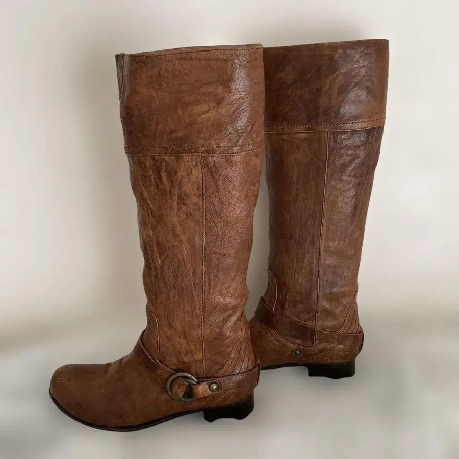 가격 인하! 새상품급! 사바사바의 브라운 롱 부츠 사이드 금장 장식 포함