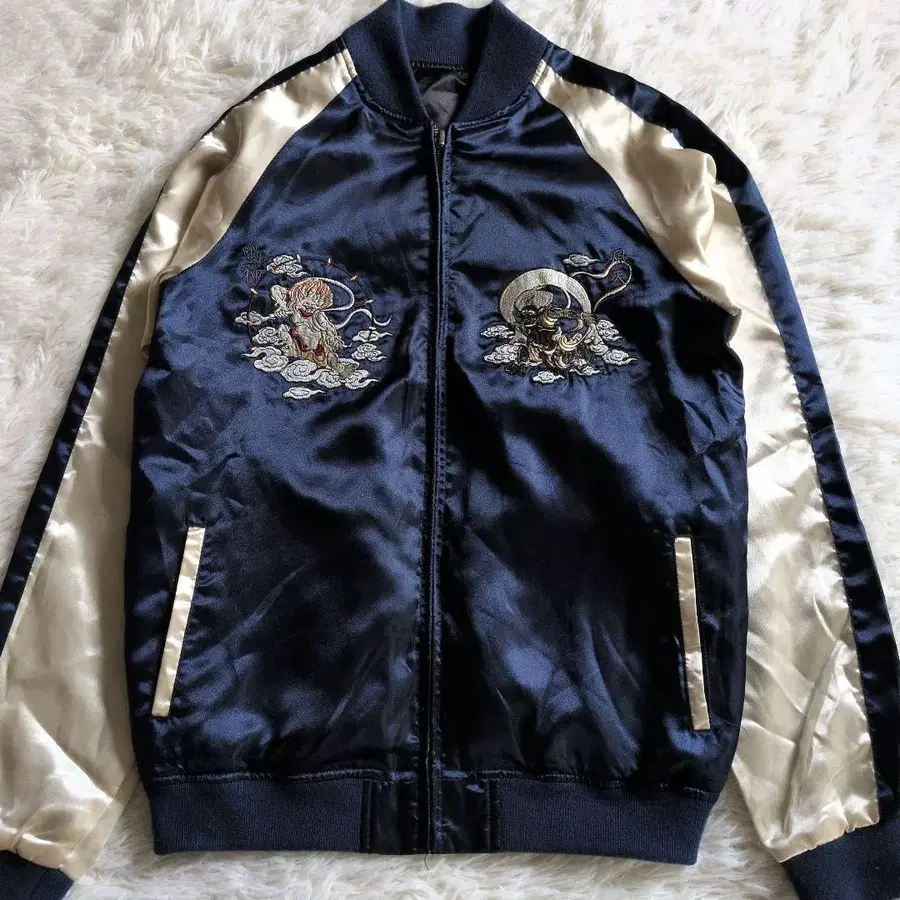 풍신뇌신 리버서블 S 자수 스카잔 네이비/아이보리