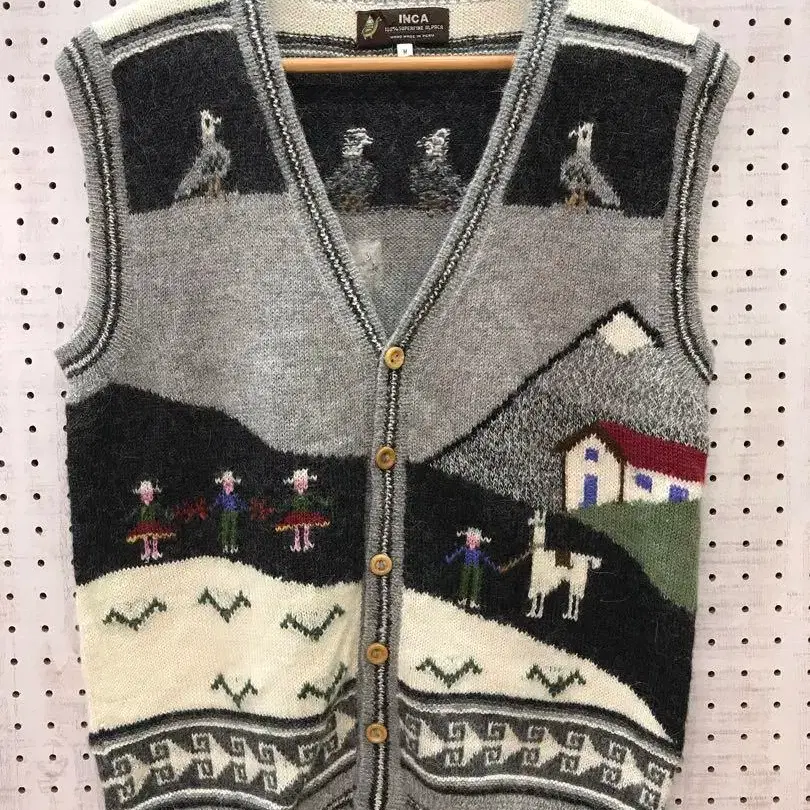페루산 INCA 잉카의 요새 알프스 풍경 파일 편직 자수 니트 베스트