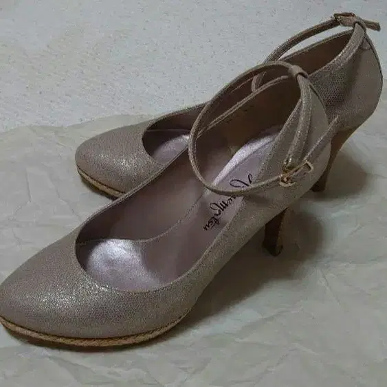 긴자 카네마츠 베이지 글리터 스트랩 하이힐