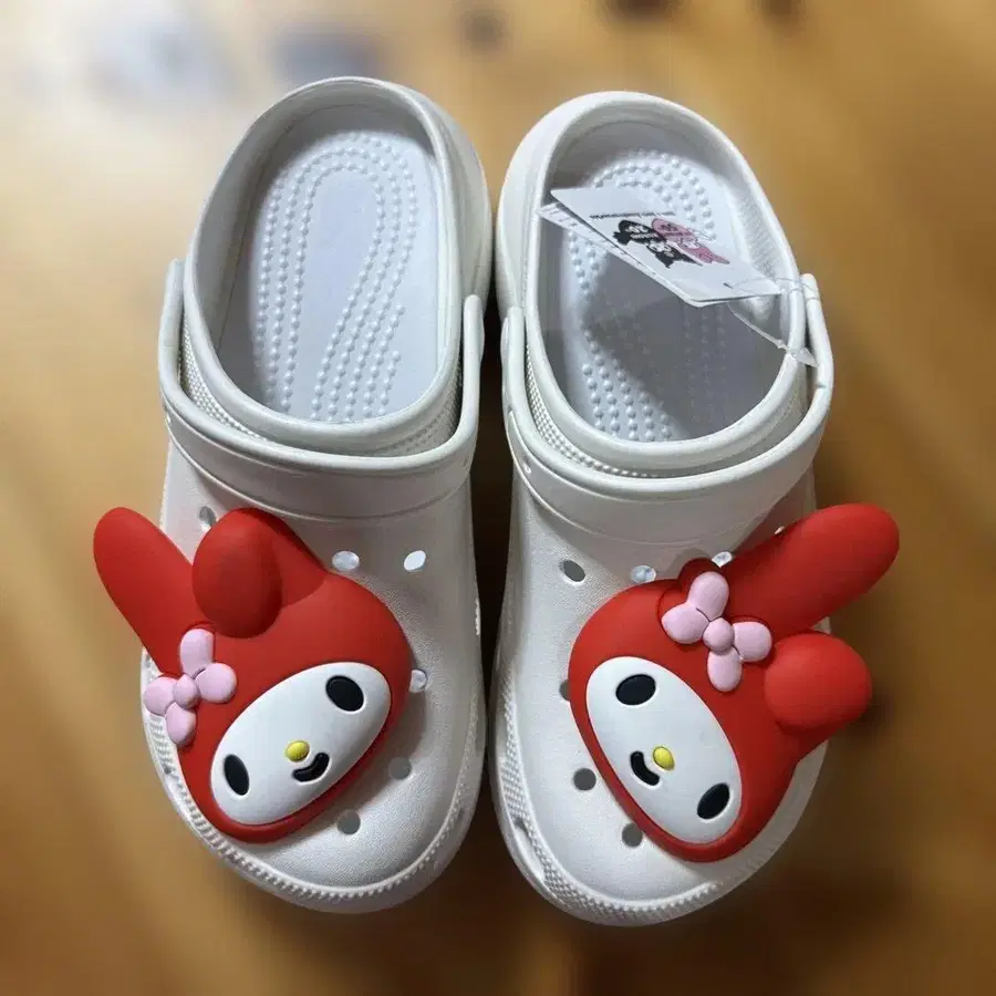 마이멜로디의 귀여운 디자인이 특징인 화이트 클로그 샌들. 사이즈 L - 색상: 화이트 - 디자인: 마이멜로디 캐릭터 포함 - 캐릭터: 마이멜로디 - 스타일: 클로그 샌들 방문해 주셔서 감사합니다.
