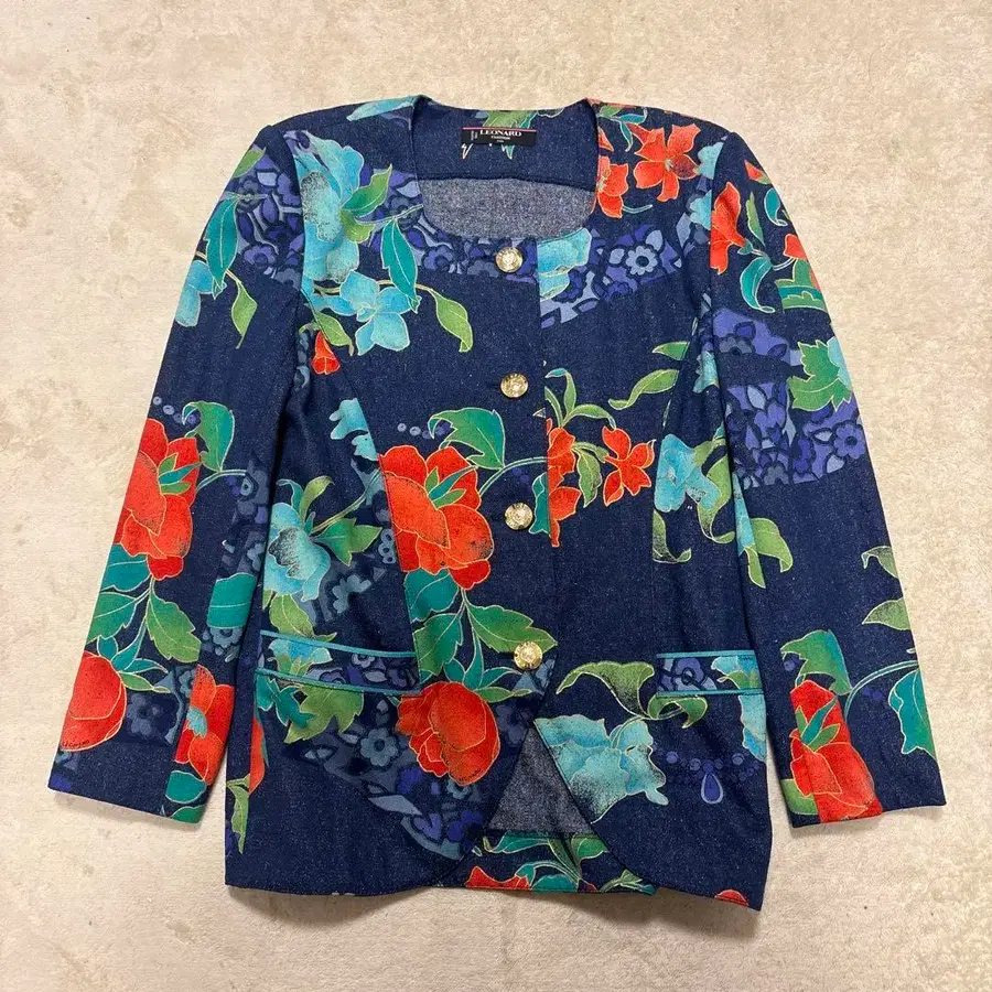 초레어 LEONARD 노카라 자켓 골드 버튼 꽃무늬 데님 9