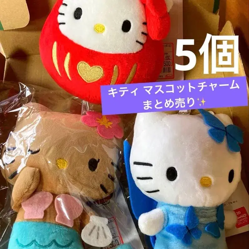 키티 마스코트 참 50주년 봉제 인형 키링 5개 세트