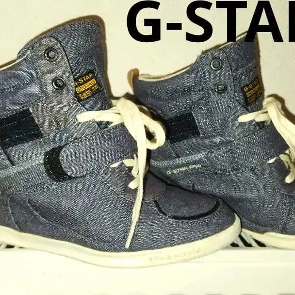 데님 소재의 하이컷 웨지 스니커즈입니다. 거의 신지 않은 새상품급입니다. - 브랜드: G-STAR - 색상: 데님 - 스타일: 웨지 스니커즈 - 소재: 데님 소재 - 특징: 하이컷 디자인 - 신발끈: 화이트 방문해 주셔서 감사합니다.