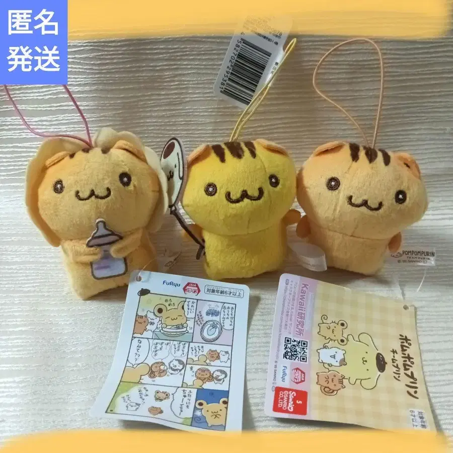 폼폼푸딩 팀 푸딩 아장아장 마스코트 팀 푸딩의 벌룬 마스코트 팀 푸딩 여러 가지 얼굴! 마스코트 베이글 3종 세트입니다. 인형뽑기 경품이므로 신경질적인 분은 삼가해 주십시오. 산리오 폼폼푸딩 마스코트 봉제 인형