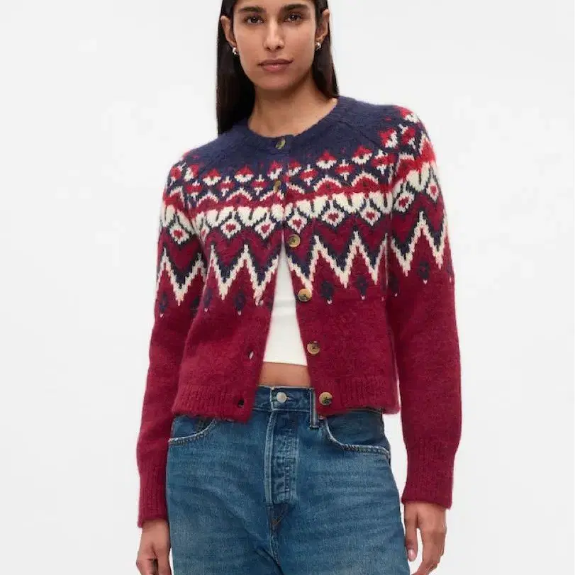 [ 미사용 새상품 ] GAP 기모 페어아일 크롭 가디건 XL 니트