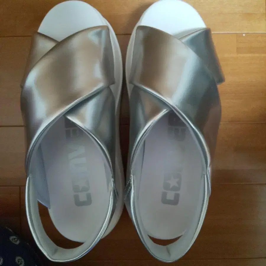 재가격 인하했습니다! CONVERSE 실버 크로스 스트랩 샌들