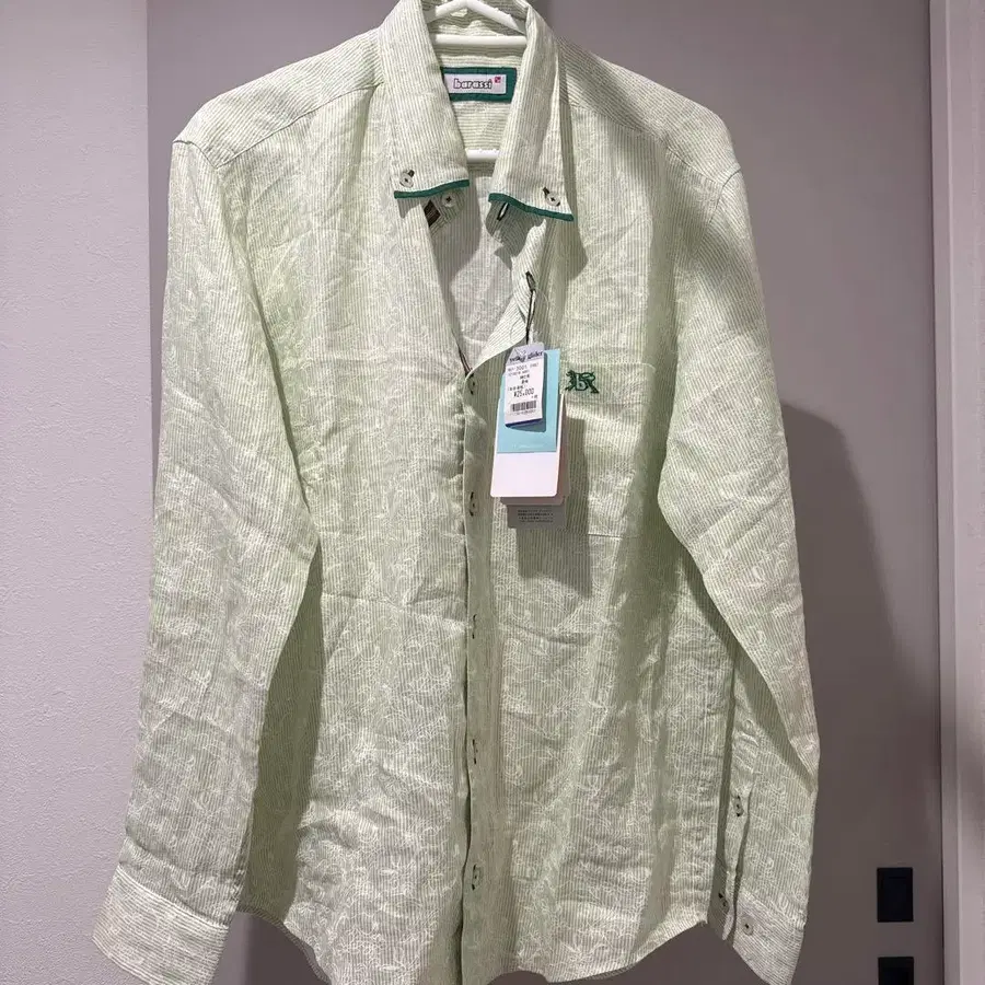 barassi 긴팔 셔츠 48 연한 녹색 린넨 100%
