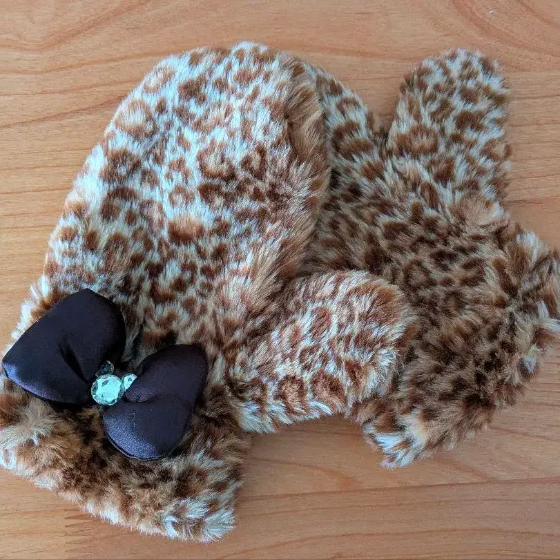 [ 사용 1회 ] 디즈니랜드 레오파드 무늬 퍼 미튼 메루카리 택배