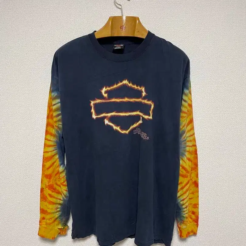 USA 제조 할리데이비슨 프레임 로고 타이다이 염색 긴팔 티셔츠 롱티