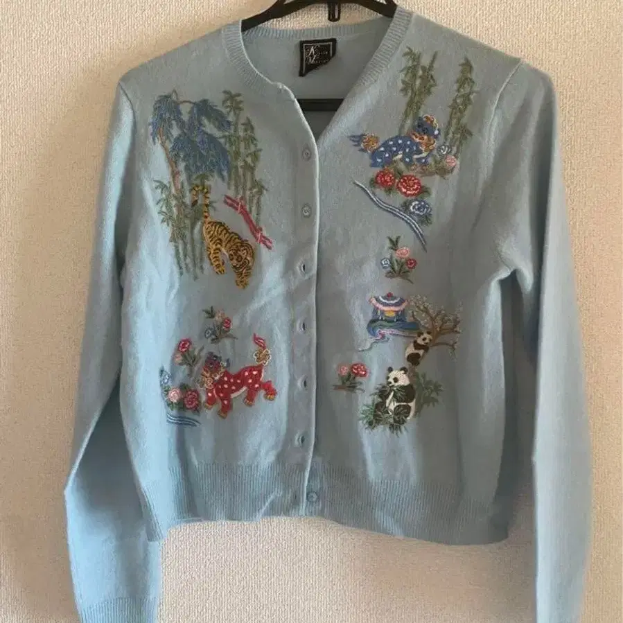 DRESSTERIOR D 자수 캐시미어 혼방 가디건