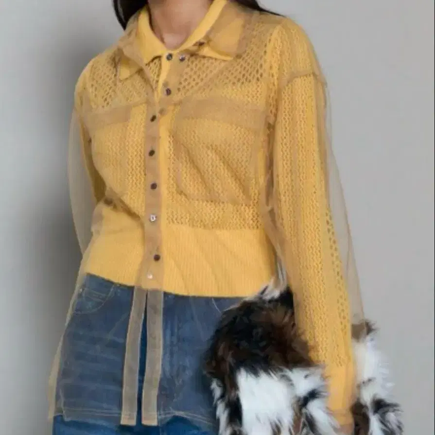MAISONSPECIAL 튤 셔츠 레이어드 폴로 니트 가디건