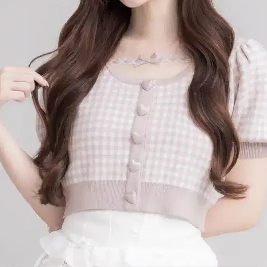 pium 하트 버튼 레이스 테이프 니트 핑크
