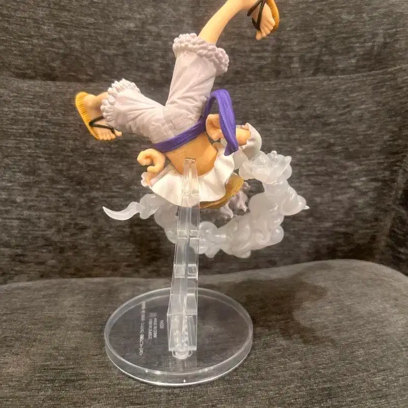 거꾸로 된 포즈에 구름 이펙트가 있는 원피스 피규어. - 캐릭터명: 원피스 캐릭터 - 포즈: 거꾸로 된 포즈 - 의상: 화이트 팬츠와 보라색 오비 - 베이스: 투명한 스탠드 - 이펙트: 구름 같은 이펙트 방문해 주셔서 감사합니다.