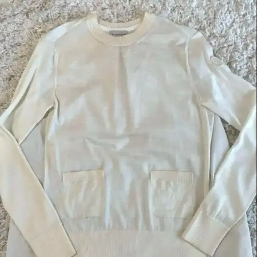 교토 다이마루에서 7만 엔 정도에 구매했습니다. 목 앞부분이 니트가 늘어난 느낌이라 직접 수선했지만, 의류 수선점에 맡기면 깨끗하게 복구될 것 같습니다. 등 부분은 바스락거리는 소재로 길게 되어 있습니다. 색상 - 화이트 소재 - 코튼, 울 넥 - 크루넥/U넥 아이보리 색상의 긴팔 스웨터, 포켓이 있어 스타일리시합니다. - 브랜드: MONCLER - 색상: 아이보리 - 스타일: 긴팔 스웨터 - 특징: 포켓 부착 - 택: MONCLER 택 포함 - 로고: 자수 로고 방문해 주셔서 감사합니다.