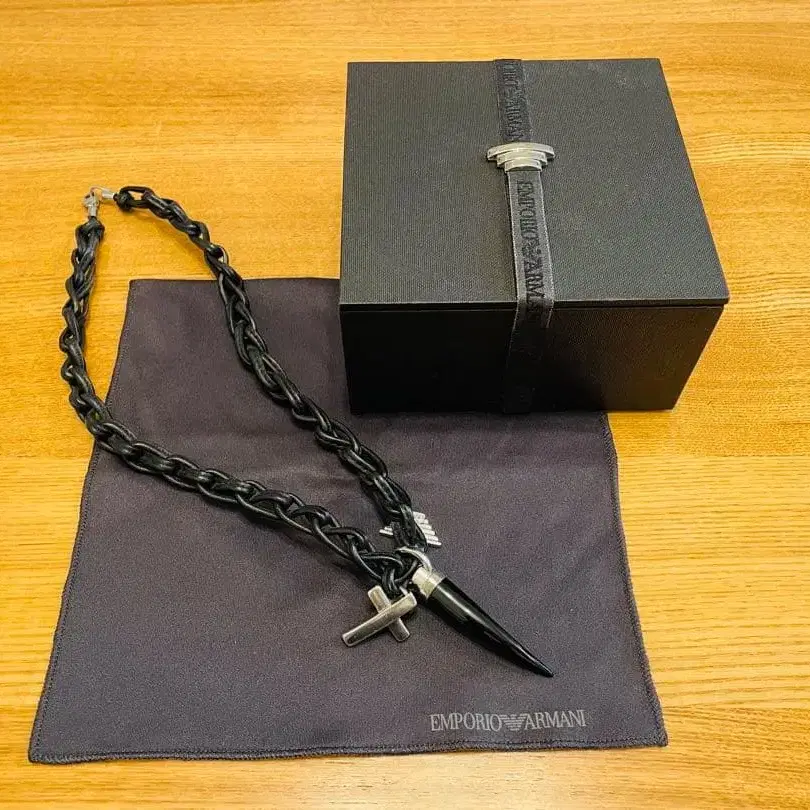 엠포리오 아르마니 남성용 목걸이 가죽 블랙 x 실버