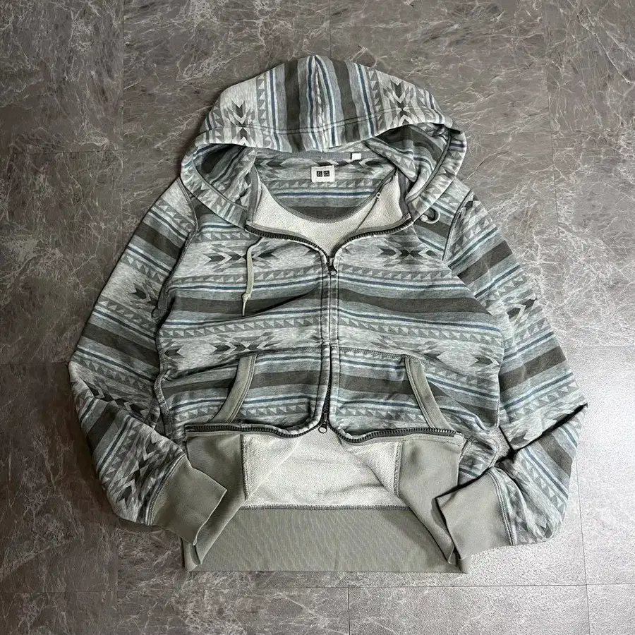 UNIQLO 더블 지퍼 후드티 올 패턴 지퍼 후드티 구제 의류