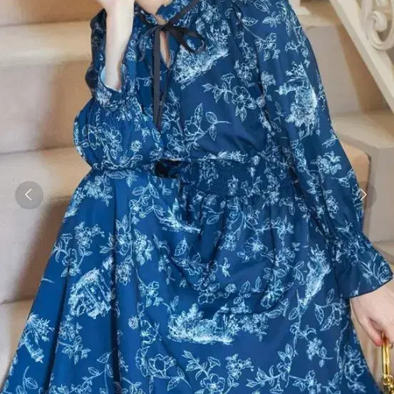 새상품급 앞뒤 2WAY 리본 포함 셔링 플라워 토와르 드 주이 원피스