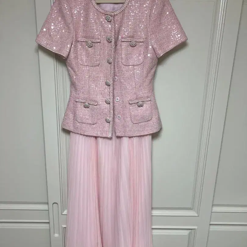 트위드 셋업 미니 드레스 2 피스 핑크 S 사이즈