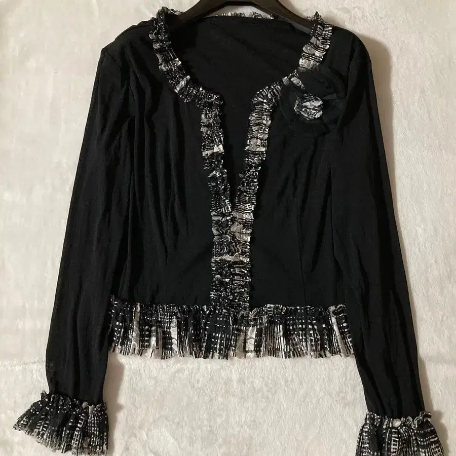 스페치오 브로치 포함 가디건 파워넷 스트레치 ⚫︎ 색상 블랙 ⚫︎ 사이즈 40 기장 46cm 가슴 너비 47cm 어깨 너비 41cm 소매 길이 57.5cm 후크 1개 ⚫︎ 상태 전반적으로 상태가 좋은 상품입니다. 세세한 부분까지 완벽을 추구하시는 분은 삼가해 주십시오.