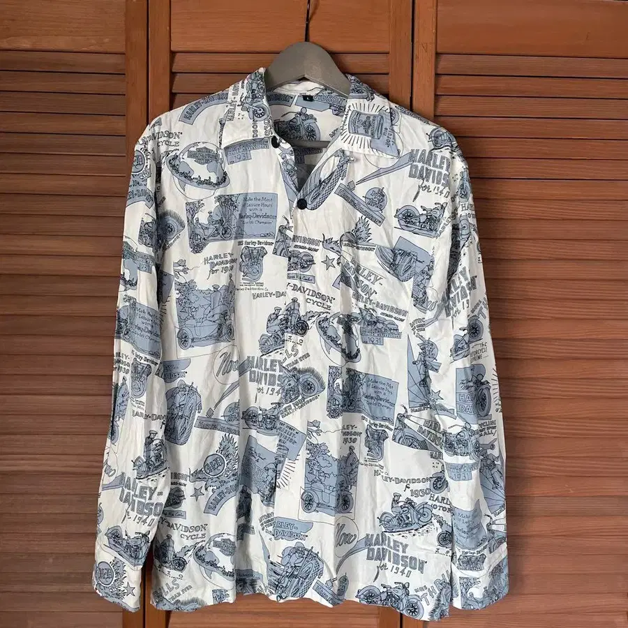 us 산겐자야에서 구매한 할리데이비슨의 레이온 긴팔 셔츠입니다. 사이즈 기장 약 옷깃 아래부터 70cm 가슴 너비 약 57cm 개인 측정이라 약간의 오차가 있을 수 있습니다. 잘 부탁드립니다.