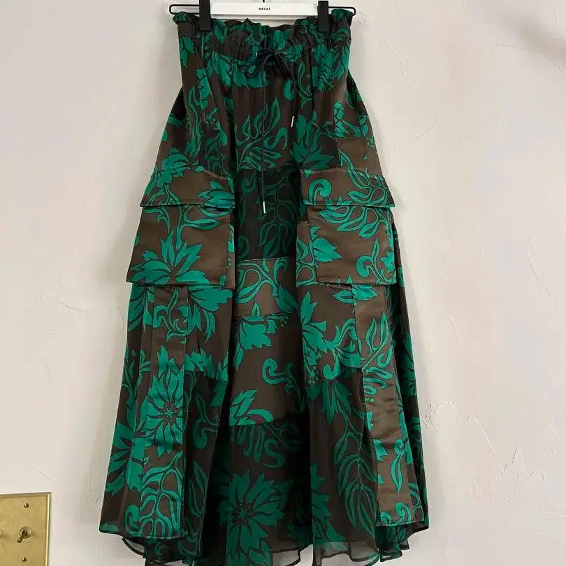 그린을 기반으로 한 플로럴 프린트가 돋보이는 스커트입니다.