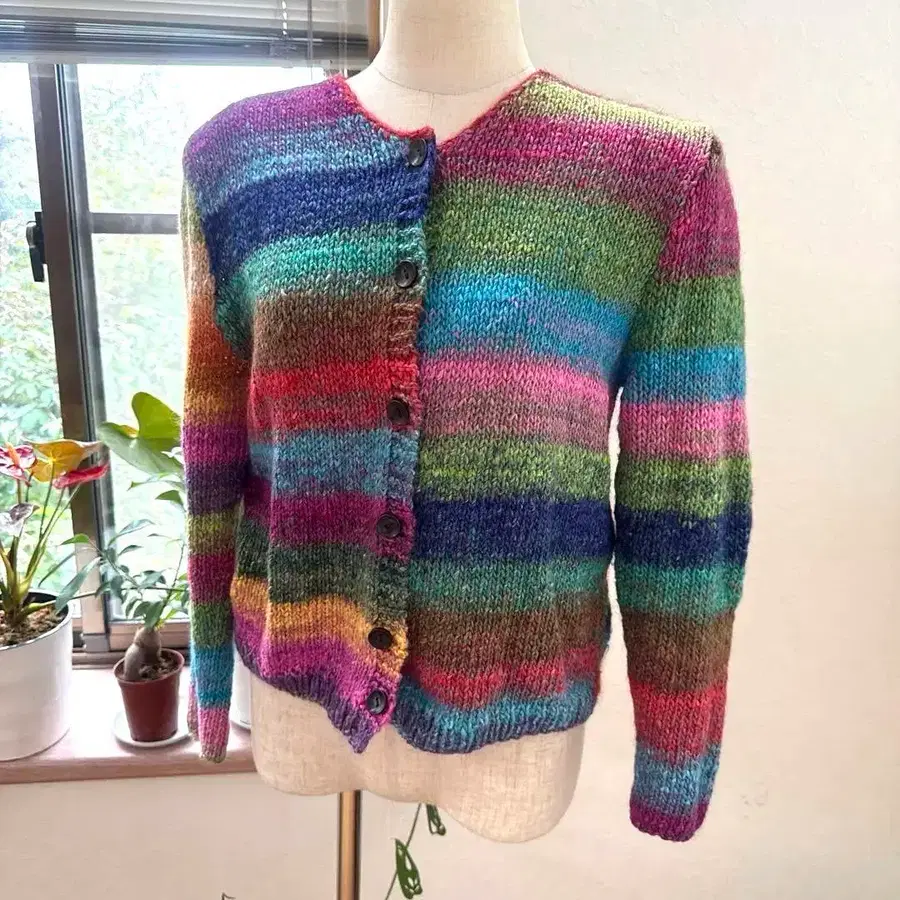 노로 에이사쿠 멀티 컬러 버튼 가디건 손뜨개질