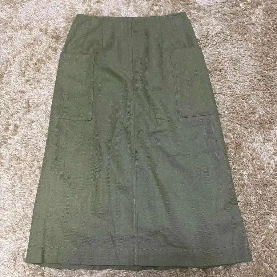 올리브 색상의 헤링본 직조 타이트 스커트 앞면에 2개의 포켓이 있습니다. 구매 후 시착으로 한 번 착용한 것이 전부입니다. - 색상: 올리브 - 디자인: 헤링본 직조 - 포켓: 앞면에 2개 - 스타일: 타이트 스커트 허리: 37cm 스커트: 길이 70cm 방문해 주셔서 감사합니다.