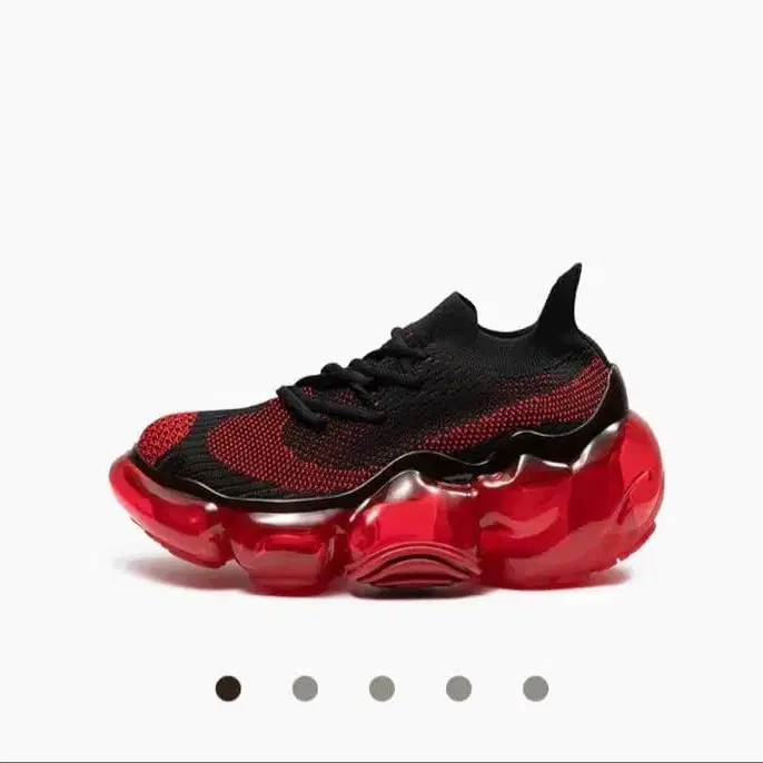 원가 31,900엔 밑창에 흠집, 신발끈에 올풀림 있음. 신발끈은 교환하는 것을 권장합니다. 거대한 젤 같은 무언가를 밟은 듯한 풋웨어 원래 몸 전체를 지탱하기 위해 튼튼해야 할 아웃솔을, 일부러 유동적이고 부드러워 보이는 모양으로 만든 점이 위트를 자극하는 디자인. 외부에 부착된 러버 파츠가 디자인에 악센트를 더하고 있습니다. 어퍼는 볼륨감 있는 밑창과는 대조적으로 가녀린 마감입니다. 샤프한 쉐이프와, 발바닥에 만든 잘록한 부분, 발가락부터 발꿈치까지 완만한 경사를 줌으로써 기존 스니커즈에는 없는 고급스럽고 날씬한 스타일을 인상 짓습니다. 또한 니트 어퍼의 비대칭으로 레이아웃된 슈홀과 패턴이 추상적인 아웃솔의 디자인을 이어받고 있습니다. 힐 높이는 약 7cm. 통굽이면서도, 밑창 전체로 몸을 지탱하고 적절한 쿠션성을 갖도록 설계하여 걷기 편하도록 만들어졌습니다. 컬러 - 레드 계열