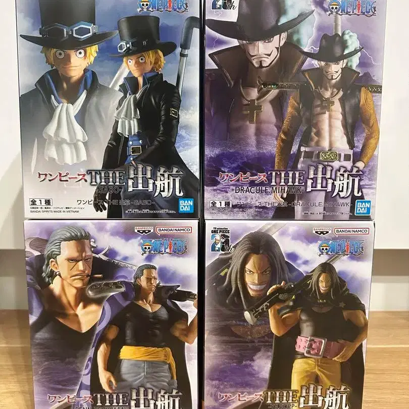 원피스 피규어 4개 세트, 섬세한 조형과 페인팅이 매력적입니다. - 모델: 원피스 THE 출항 - 시리즈: THE GRANDLINE MEN - 제조사: 반다이 - 수량: 4개 세트 방문해 주셔서 감사합니다.