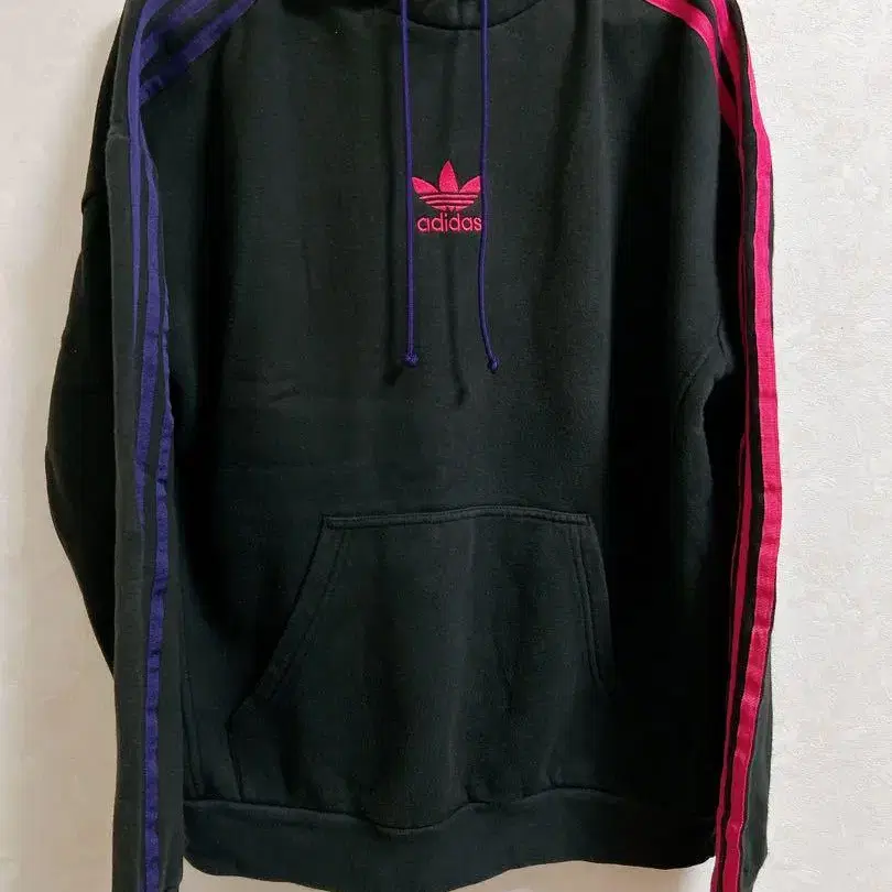 2가지 색상으로 귀엽습니다. 후드 부착된 블랙 후드티, 보라색과 핑크색 스트라이프가 특징입니다. - 브랜드: adidas - 색상: 블랙, 보라색, 핑크 - 디자인: 후드 부착, 슬리브에 스트라이프 - 로고: adidas 로고 - 스타일: 캐주얼, 스포츠 웨어 방문해 주셔서 감사합니다.