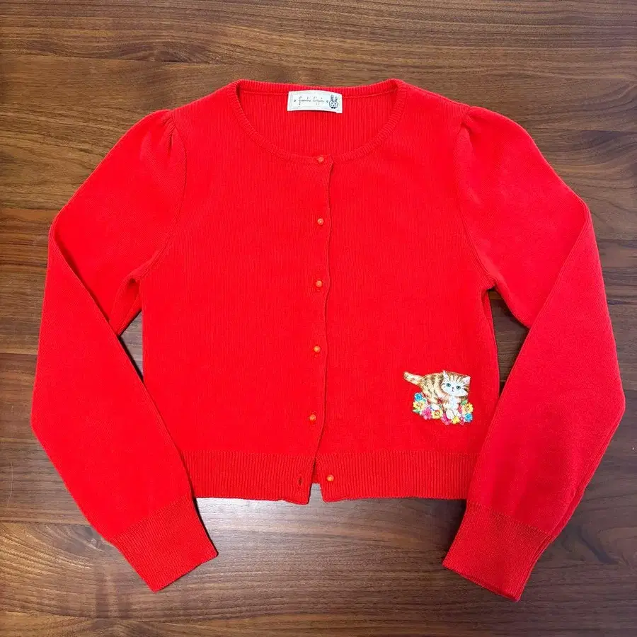 프랑슈리페 가디건 빨간색 고양이 자수 와펜