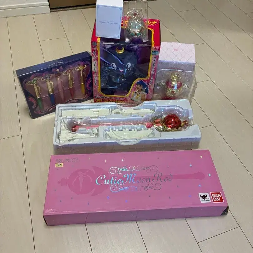 세일러문의 Cutie Moon Rod와 관련 아이템 세트입니다. 구매 시 상자를 열어 상품을 확인한 정도입니다. 낱개 판매는 생각하고 있지 않습니다. 일괄 구매해주시면 좋겠습니다. 배터리가 필요한 상품은 구매 시부터 배터리를 한 번도 넣지 않았습니다. 현 상태 그대로 판매하는 것에 이해해주시는 분, 잘 부탁드립니다. - 아이템명: Cutie Moon Rod - 브랜드: BANDAI - 캐릭터명: 세일러문 - 세트 내용: 복수의 아이템