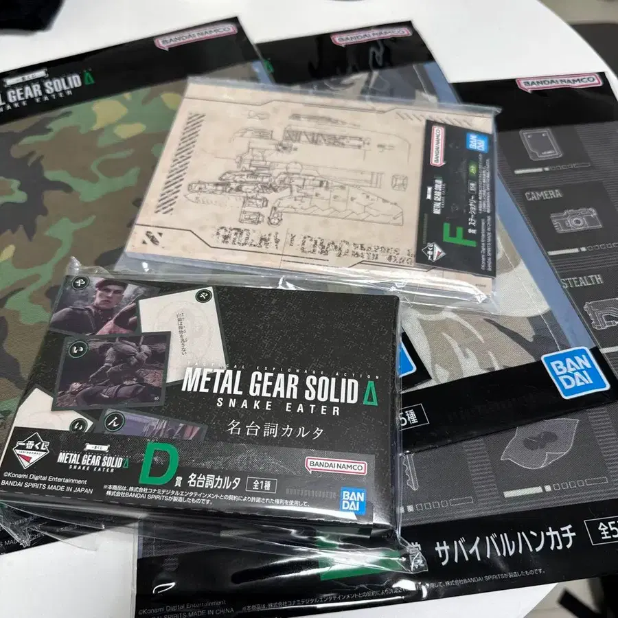 1번 복권 메탈기어 솔리드 D상 명대사 카르타 E상 서바이벌 손수건 3종 F상 문구류 5개 세트 상품입니다.