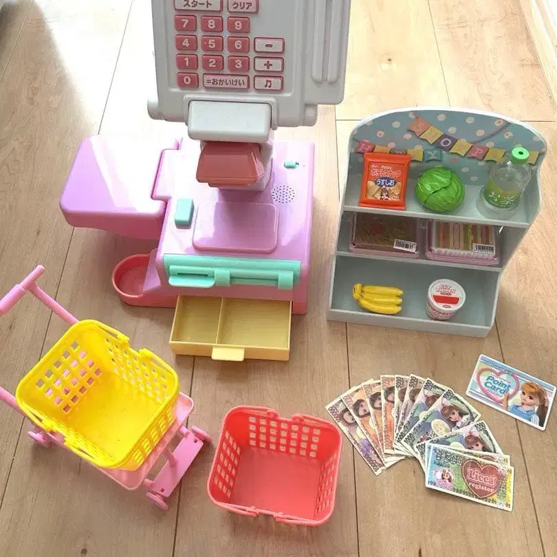 리카짱 오사츠 스윗토 오카이모노 레지스터입니다 ♪ 외동딸이 가지고 놀았지만 더 이상 가지고 놀지 않게 되어 판매하게 되었습니다. 사진에 있는 것이 전부입니다(^^) 돈에 찢김이나 접힌 부분이 있지만, 새 상품으로 구매한 것을 외동딸만 사용했기 때문에 아직 사용 가능합니다. 계산대의 작동도 확인했습니다. 삑 소리가 나거나 노래가 흘러나오거나, 리카짱의 목소리로 〇〇엔입니다 라고 말해줍니다. 상품은 무엇이든 반응해주기 때문에, 부속된 완구가 아니라 집에 있는 물건이라도 ◯ 엔입니다 라고 말해줍니다!