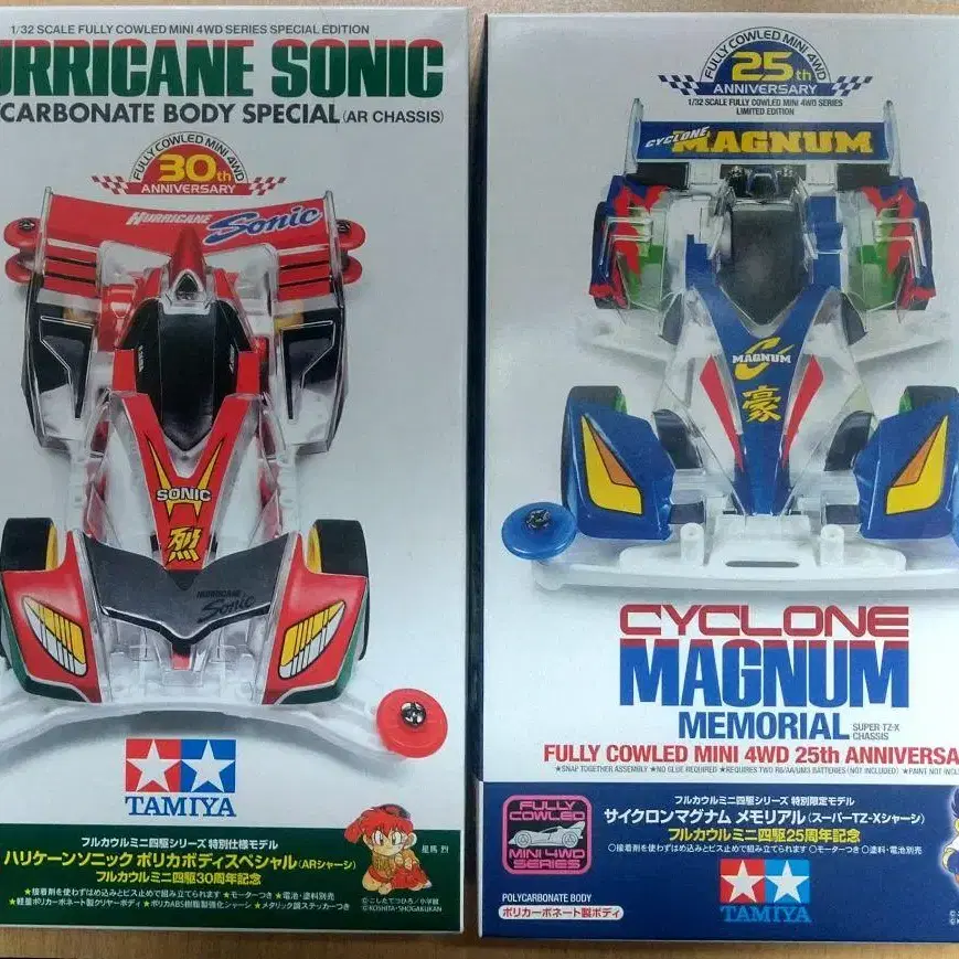 풀 카울 미니 사륜구동 25, 30주년 기념을 기념하여 출시된 사이클론 매그넘과 허리케인 소닉의 레어 특별 한정판 모델 2대 세트
