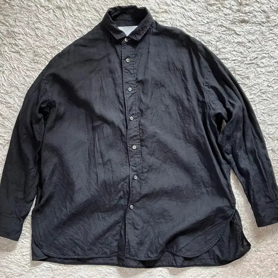• 리베레이션 셔츠 긴팔 무지 블랙 린넨 혼방 레이온 혼방 심플