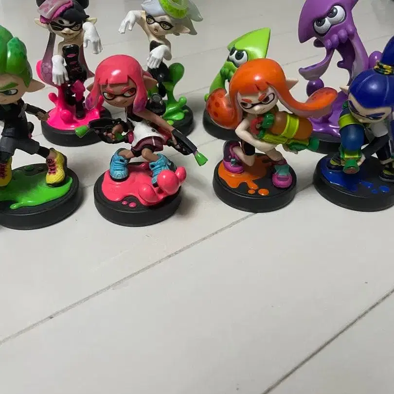 스프라툰 amiibo 8체 세트와 스프라툰 Switch 케이스, 씰, 컨트롤러 케이스 세트입니다. 중고품에 대한 이해 부탁드립니다. 낱개 판매 불가합니다.