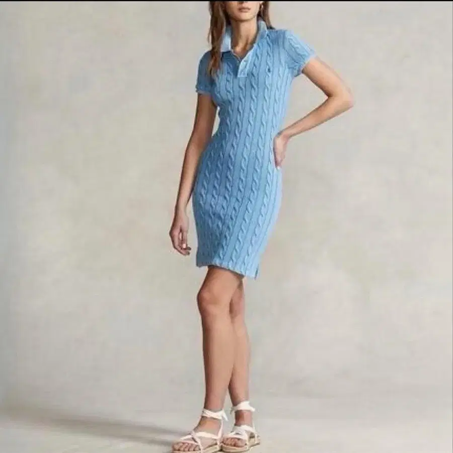 상품명: 케이블 니트 폴로 드레스 사이즈: XS 색상: 라이트 블루 소재: 면 100% 정가: 34,100엔
