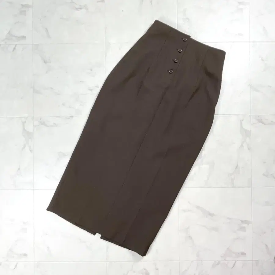 자동 번역되었어요. 원문보기새상품급 ASTRAET 아스트라에트 도비 페그탑 롱 스커트 펜슬 타이트 프론트 버튼 종아리 기장 브라운 색상 사이즈 0*HD26
