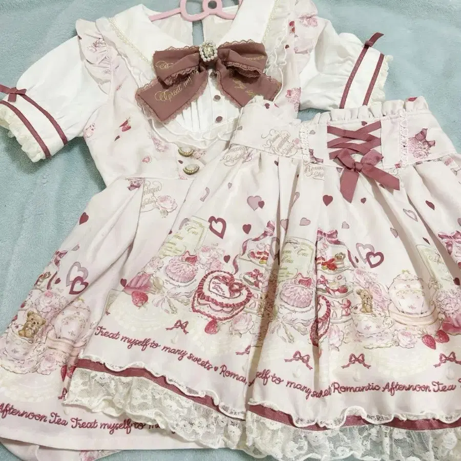 LIZLISA 셋업 애프터눈 티 패턴 핑크