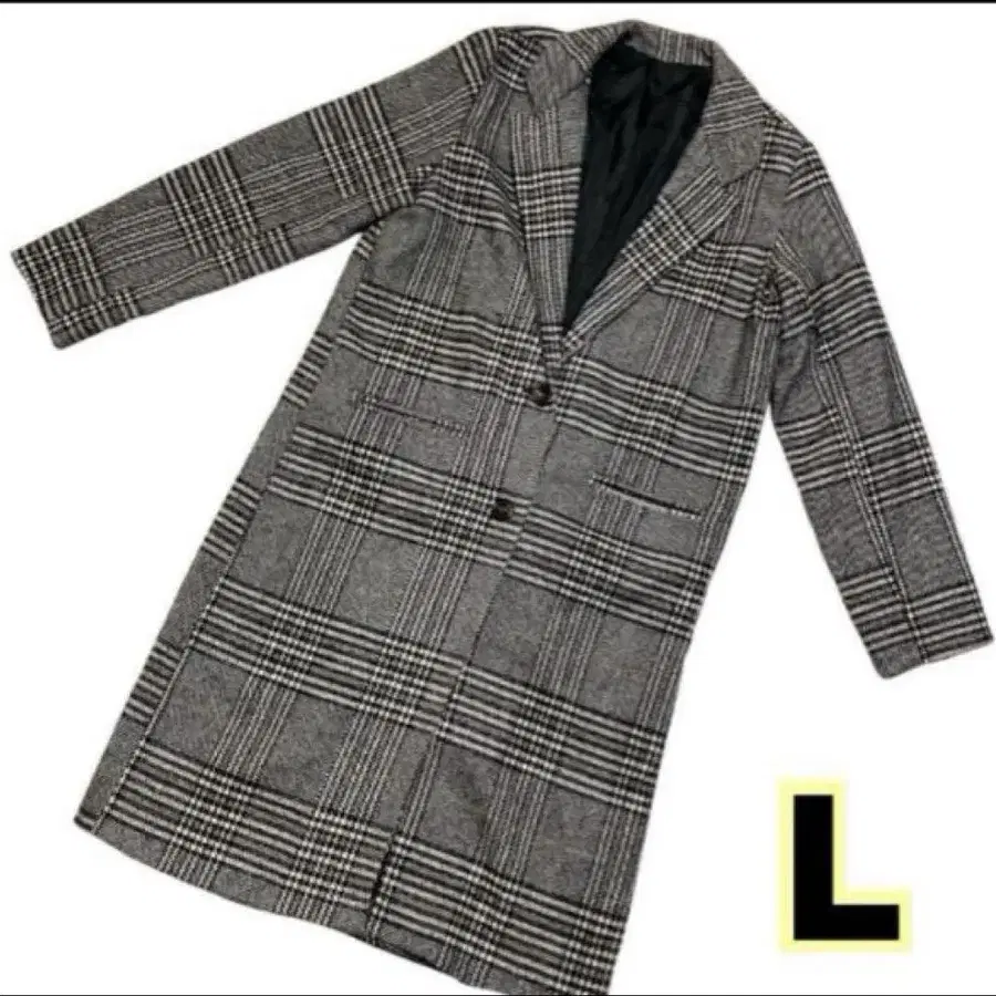 [새상품급] 여성용 체스터 코트 롱 코트 아우터 체크 L 블랙