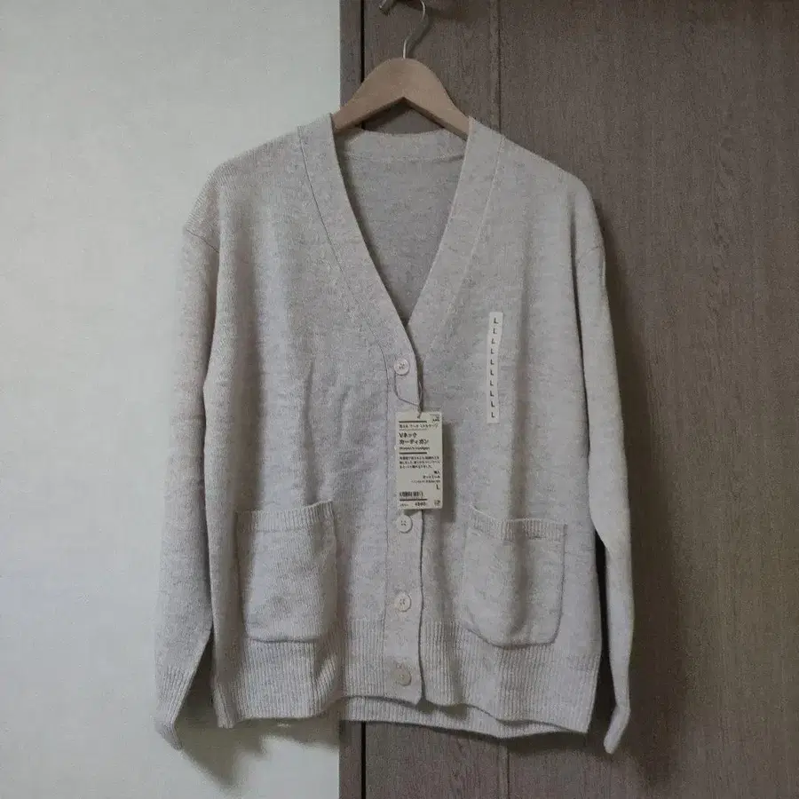 세탁 가능한 울 미들 게이지 V넥 가디건 L 오트밀