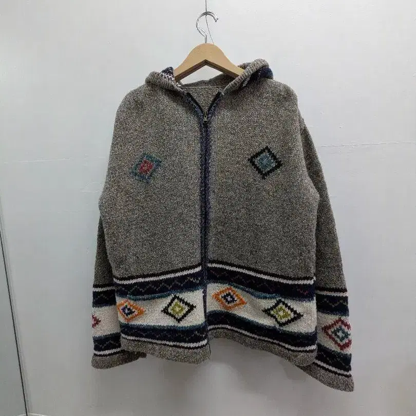 핸드메이드? 에스닉 패턴 집업 니트 후드티