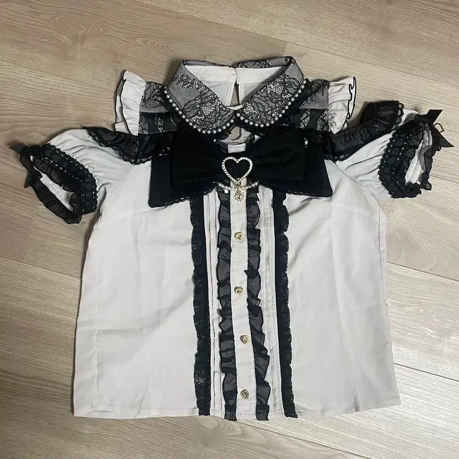 LIZ LISA 빅 리본 오픈 숄더 블라우스 핑크 x 블랙 지뢰