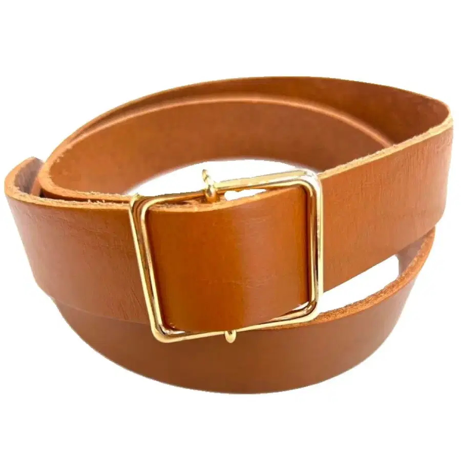 [보네 볼론테] 천연 가죽 핑 없는 가죽 벨트 카멜 미사용 새상품