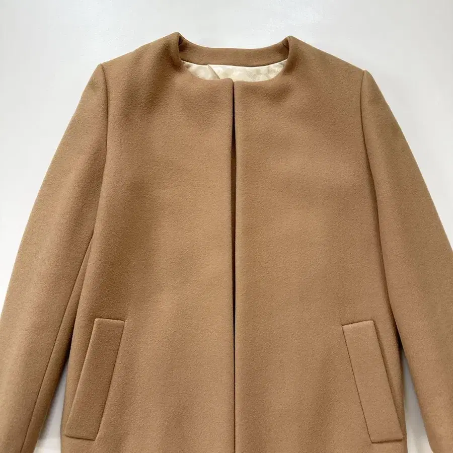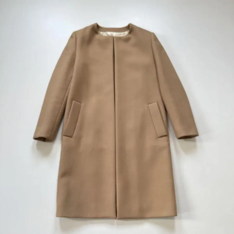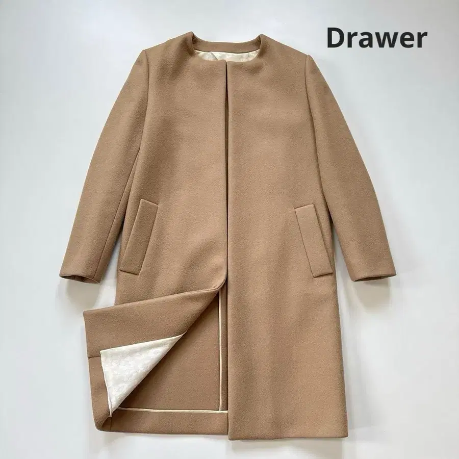 새상품급 드로어 노카라 롱 코트 버튼리스 울 카멜
