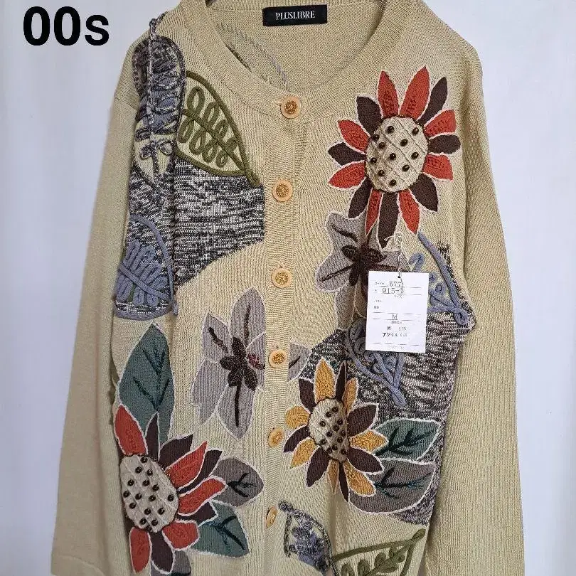[ 00s, 미사용 ] 긴팔 니트 가디건 컬러풀 플라워 라인 아트
