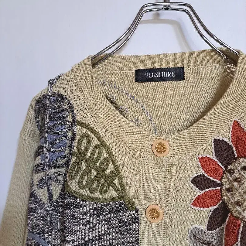 • 꽃무늬 자수 가디건 울 100% 레트로 귀여운 M 사이즈 90s